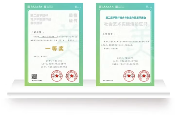 針對參選作品,執委會將評選個人獎項:一等獎、二等獎、三等獎(個人榮譽證書)(社會實踐證書);個人獎項:學生獎牌;機構獎項:優秀組織單位;教師獎項:優秀美育老師獎。For the submitted works, the organizing committee will select the following awards: individual awards: first prize, second prize, and third prize (individual honor certificate) (social practice certificate); individual award: student medal; institutional award: outstanding organizing unit; teacher award: outstanding art education teacher award.